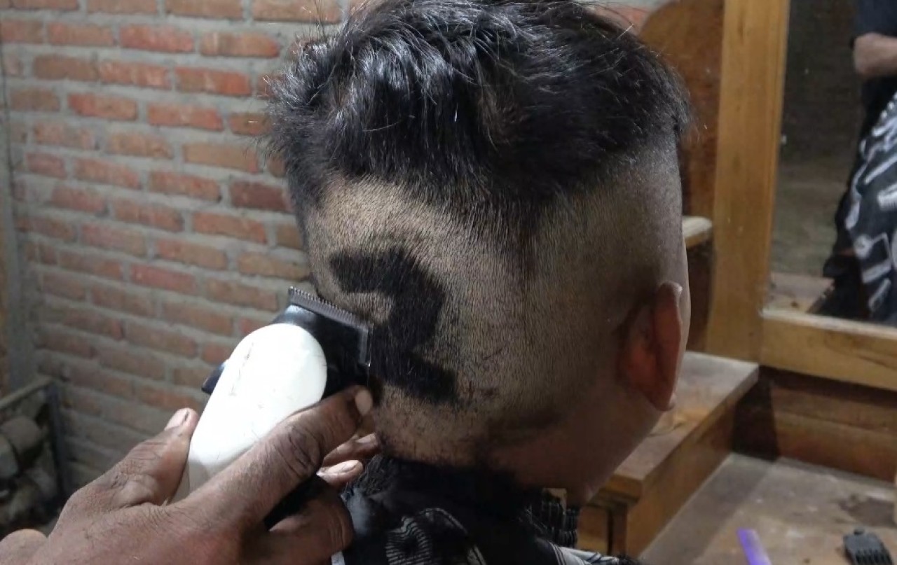 Seperti yang dilakukan anak-anak di Desa Kedungkumpul, Kecamatan Sukorame, sejumlah pelajar sekolah dasar (SD) dengan sukarela mencukur gundur rambut mereka.Senin (19/2/2024)