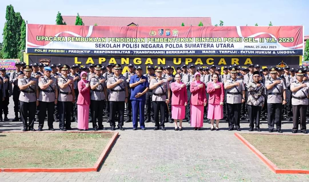 “Kepada para siswa tanamkan sikap responship dan ikhlas,” ujar Agung membacakan amanat Kalemdik Polri saat Upacara Pembukaan Pendidikan Pembentukan Bintara (Diktukba) Polri Gelombang II TA 2023 di halaman SPN Polda Sumut, Selasa (25/7).