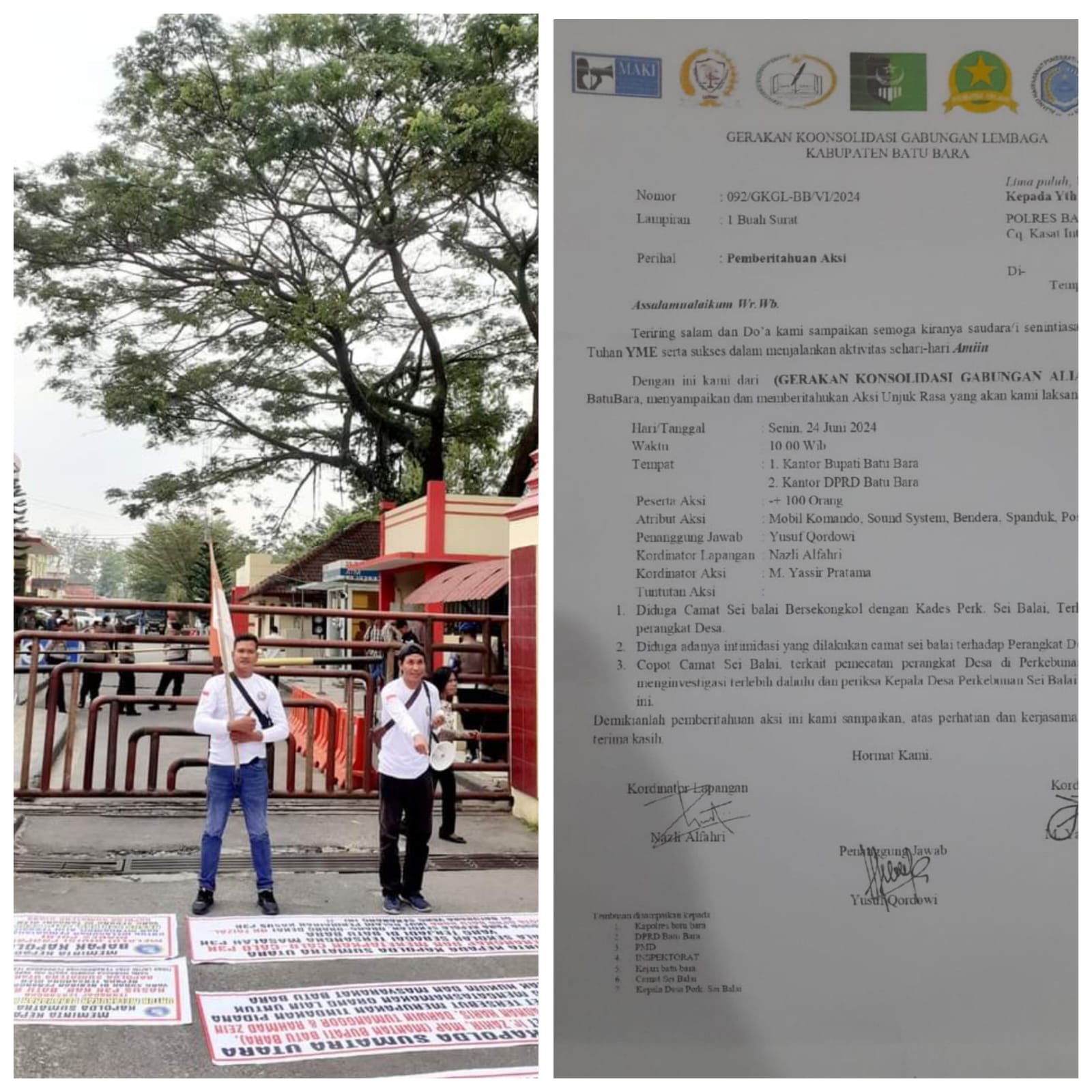 Jalurlangit.id || Batu-Bara, Puluhan media dan beberapa lembaga menanggapi adanya isu aksi demo yang mengatasnamakan, “Gerakan Konsolidasi Gabungan Lembaga Kabupaten Batu Bara” yang akan digelar pada Senin 24 Juni yang akan datang menjadi pertanyaan besar??!!, dikarenakan adanya 7 Logo Lembaga tercantum dalam surat pemberitahuan aksi sementara yang menandatangani hanya 3 orang tanpa membubuhkan Stempel ke 7 lembaga tersebut, pada Kamis.(20/06/2024)