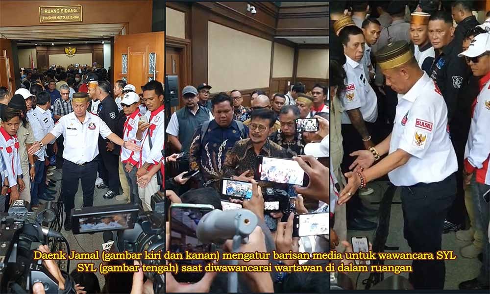 Namun demikian, ketika SYL keluar dari ruang sidang untuk memberikan pernyataan kepada wartawan, terjadi desak-desakan yang cukup parah antara para pengawal SYL bersama aparat kepolisian yang mengawal sidang dengan para awak media yang berjubel menunggunya di depan pintu keluar ruangan. Atas kondisi berdesak-desakan yang kemudian menimbulkan insiden itu, team kawal SYL, Daenk Jamal, memberikan penjelasan dan klarifikasinya kepada media ini.