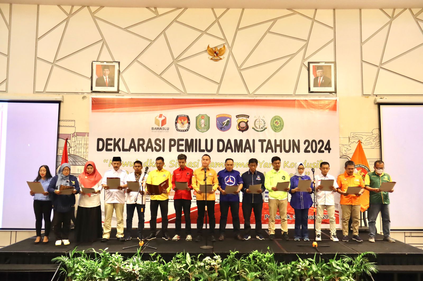 Untuk diketahui, kegiatan ini mengangkat tema, “Mewujudkan Situasi Kamtibmas Yang Kondusif Dari Kalimantan Barat Untuk Indonesia”. Deklarasi melibatkan Bawaslu, KPU, Partai peserta Pemilu, TNI-Polri, Kepala Daerah, tokoh agama, tokoh adat, tokoh masyarakat, tokoh pemuda, akademisi hingga organisasi kemasyarakatan.(Red.JL)