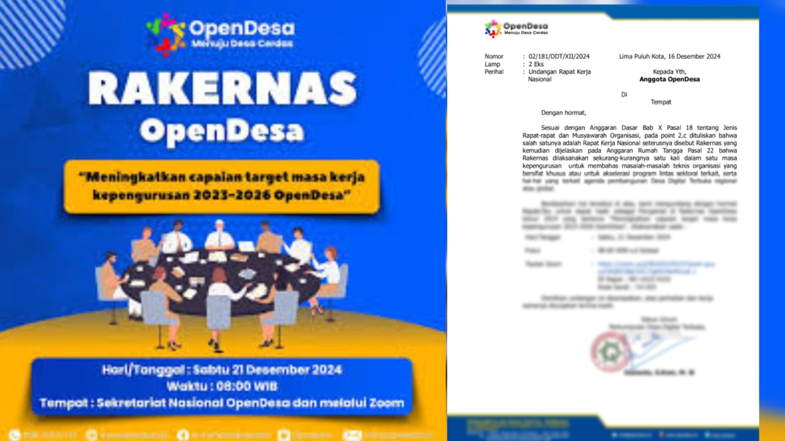 Jakarta, Untuk Lima Puluh Kota di Indonesia, perkumpulan Desa Digital Terbuka (OpenDesa) akan menggelar Rapat Kerja Nasional (Rakernas) tahun 2024 pada Sabtu, 21 Desember 2024. Acara yang bertema “Meningkatkan capaian target masa kerja kepengurusan 2023-2026 OpenDesa” ini akan menjadi forum strategis untuk membahas akselerasi program lintas sektoral terkait agenda pembangunan desa digital regional dan global, Jumat, 16/12/2024.