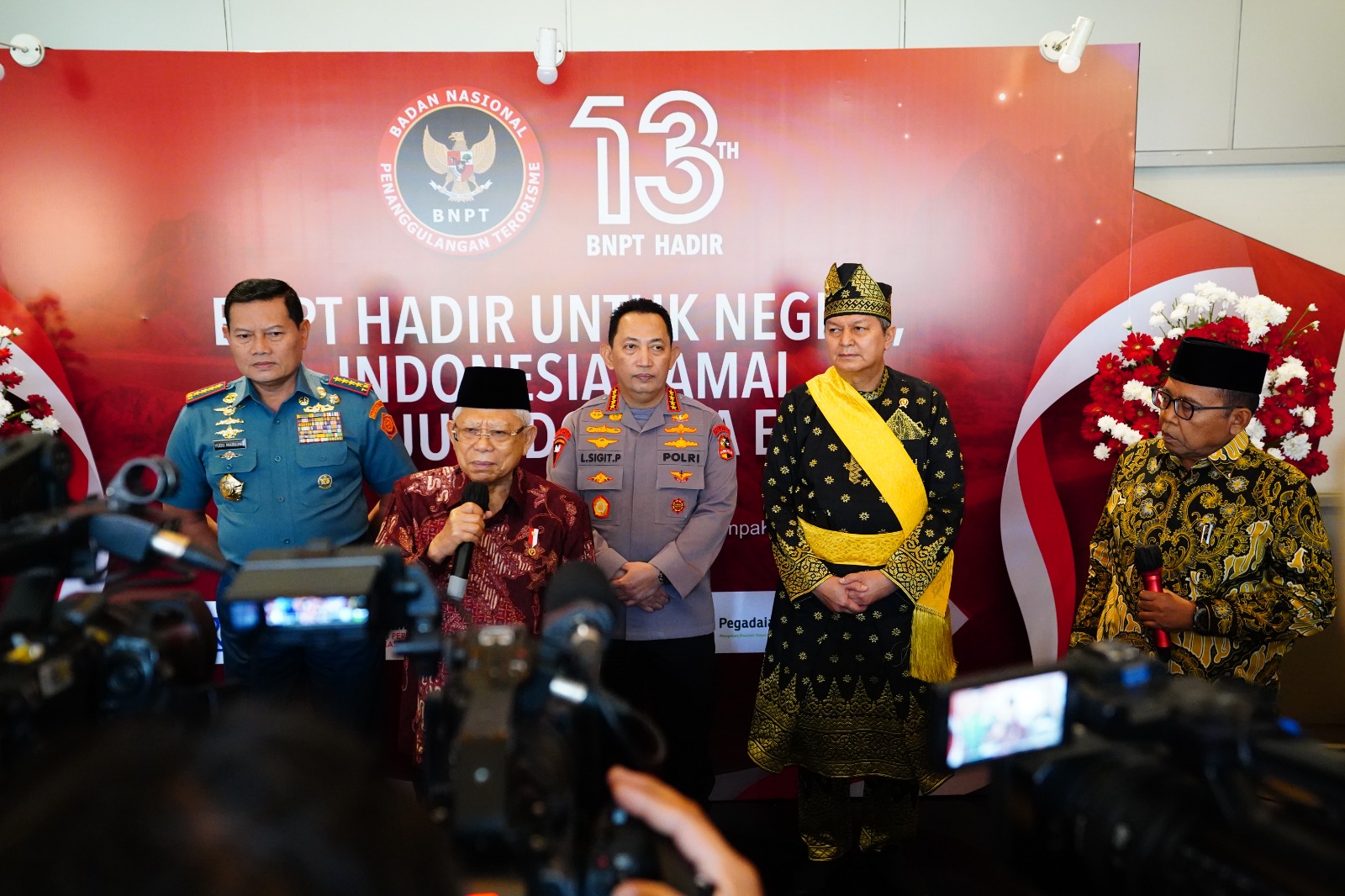 Panglima TNI Laksamana TNI Yudo Margono S.E., M.M mengucapkan selamat ulang tahun ke-13 kepada BNPT. “TNI akan selalu bersinergi terhadap BNPT maupun Polri dalam rangka penanggulangan ataupun antisipasi bahaya terorisme baik dengan hard atau soft approach untuk keamanan kita bersama,” kata Panglima TNI.