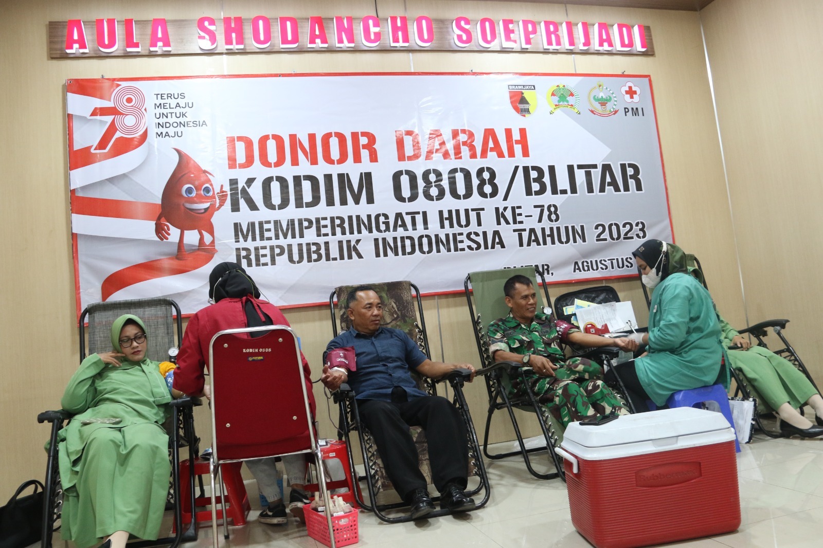 Blitar – Dalam rangka menyambut peringatan HUT ke 78 Kemerdekaan Republik Indonesia Tahun 2023, Kodim 0808/Blitar bekerjasama dengan PMI Kabupaten Blitar, menggelar kegiatan bakti sosial donor darah.