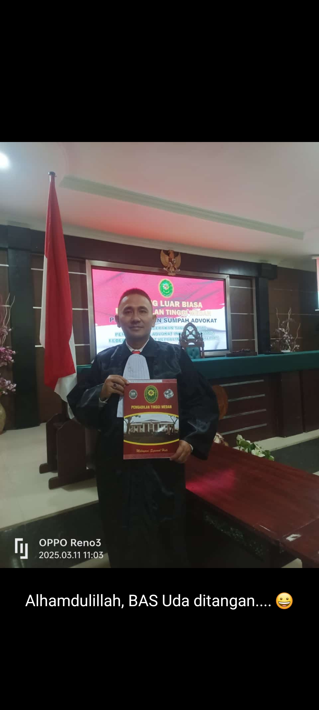 MEDAN || Sumatera Utara – Pimpinan Redaksi dan segenap jajaran keredaksian dan wartawan media jalurlangit.id mengucapkan “selamat dan sukses atas pelantikan dan pengucapan sumpah Advokat Anggota Peradi Pergerakan Mhd.Aliaman H Sinaga.SE,.SH selaku pemilik media jalurlangit.id oleh Ketua Pengadilan Tinggi Sumatera Utara, Selasa 11 Maret 2025 di Ruang Sidang terbuka Pengadilan Tinggi Sumatera Utara.