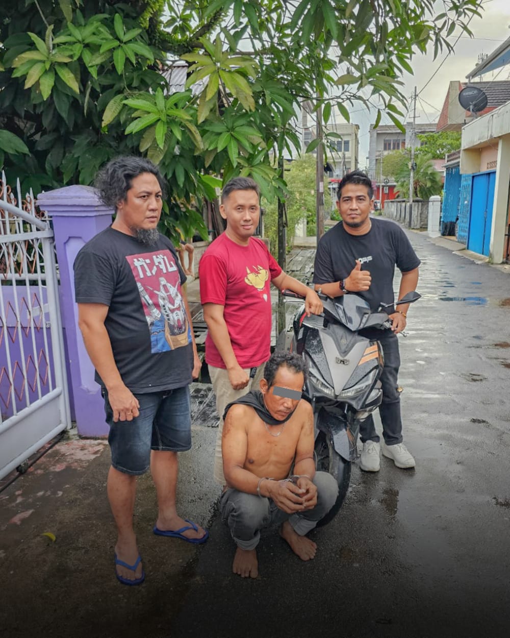 “Sekitar pukul 15.00 WIB Tim Berang-Berang mendapatkan informasi bahwa pelaku sedang berada di Kampung Beting, Pontianak Timur, dan selanjutnya tim melakukan penangkapan terhadap tersangka. Tersangka selanjutnya di bawa ke Gg Abadi Sui. Jawi untuk mengambil barang bukti yang diparkirkan di rumah kosong sekitar rumah keluarga tersangka”, pungkas AKP. Hery. (Red.JL)