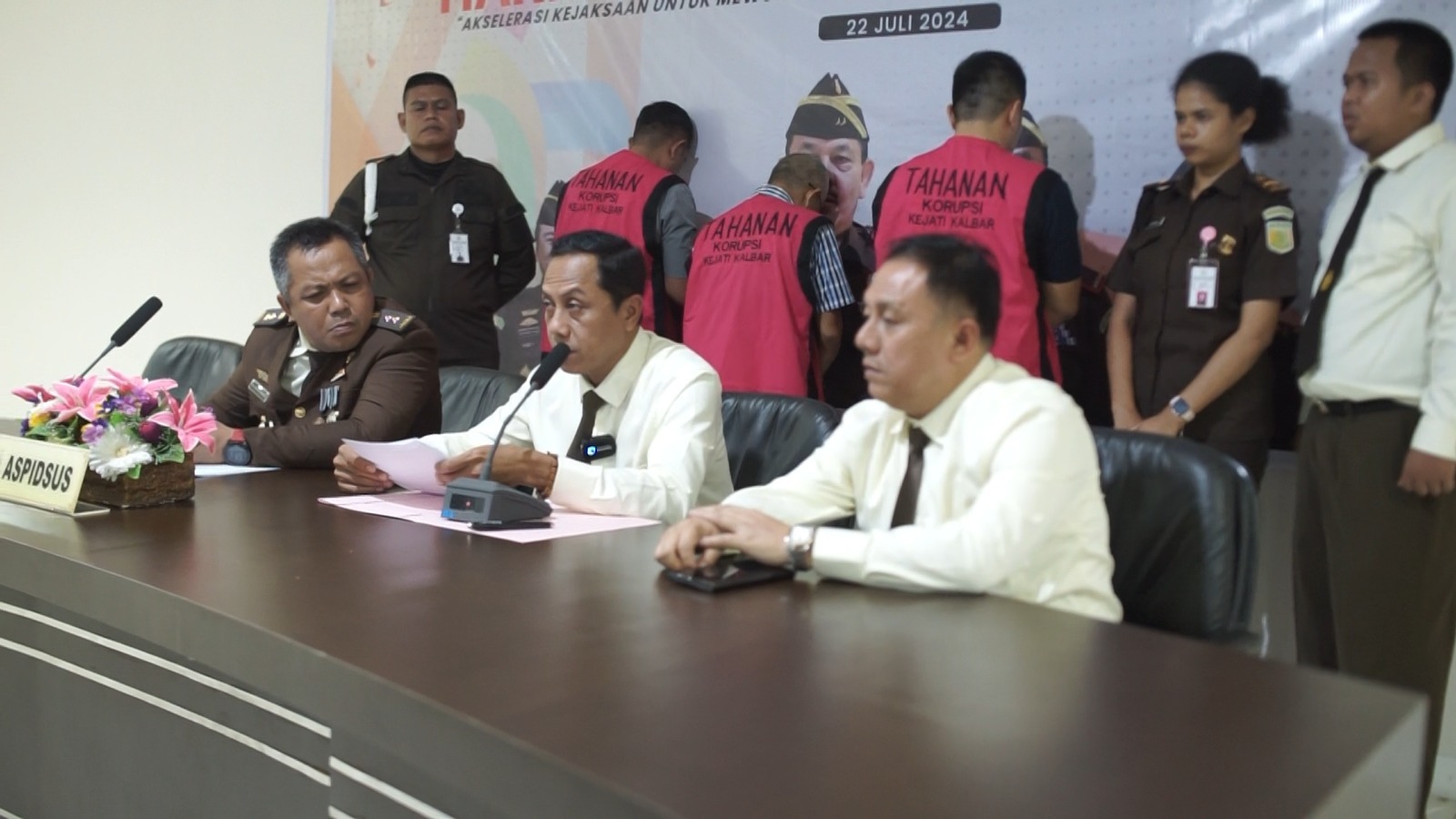 Tim Penyidik Kejaksaan Tinggi Kalimantan Barat dalam upaya penegakan hukum, setelah melakukan serangkaian tindakan penyidikan berdasarkan Surat Perintah Penyidikan Nomor : Print-06/0.1/Fd.1/07/2024 tanggal 22 Juli 2024. Tim Penyidik setelah yakin dengan telah memperoleh 2 (dua) alat bukti yang cukup kuat melakukan penahanan terhadap tersangka dugaan Tindak Pidana Korupsi atas nama ‘AH’ yang sebelumnya berdasarkan Surat Perintah Penyidikan Nomor : Print-06/0.1/Fd.1/10/2023 tanggal 20 Oktober 2023 telah menetapkan 6 Tersangka dalam perkara yang sama.