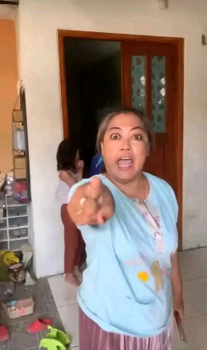 Sementara sang emak berikut anaknya itu nampak sedang marah, bahkan pemuda berambut cepak sampai melontarkan kata-kata kasar kepada sang kurir.