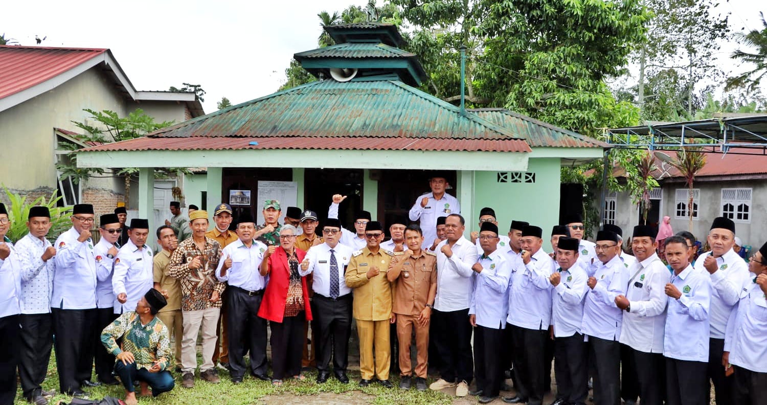 Dikesempatan itu juga, keluarga Sukendro Sidabutar menyerahkan wakafnya kepada masyarakat melalui Kakankemenag H Bahrum Saleh, Nazir Masjid dan Pemkab Simalungun.